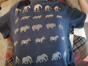 One of Eliane’s sons was recently wearing a truly terrific T-shirt designed by Tuli, Spirit of Africa. On it was a lovely 5 by 5 square array of four-legged animals. How many legs were there on the animals altogether?