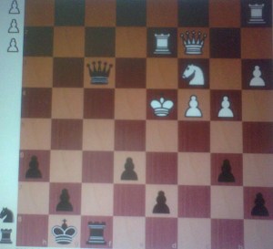 White is far ahead on material, but that will be of no help because what matters much more is that his king is in a perilous position. It is Black to move and force checkmate in not more than 4 moves (meaning four by Black, starting now, and three by White as the players of course take alternating turns).