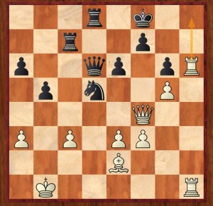 One of my chess team-mates in Belgium is a very strong International Master who is really likely to become a Grandmaster in the fairly near future. If he loses a game, he still endeavours afterwards to spot opportunities which might have saved the game–or could perhaps even have won it. Though the specific position above did not actually occur in practice, it is based on ideas from a recent encounter. It is White to play and win.