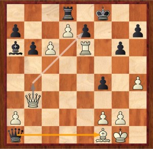 The super-strong move 1 Qa3!! wins, and it actually induced Black to resign in the game. If 1…Qxf1+ 2 Kh2, then Black has no good way to defend his e7-pawn, and after it falls his king and rook will be in king-sized double trouble!!