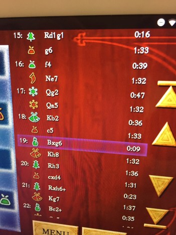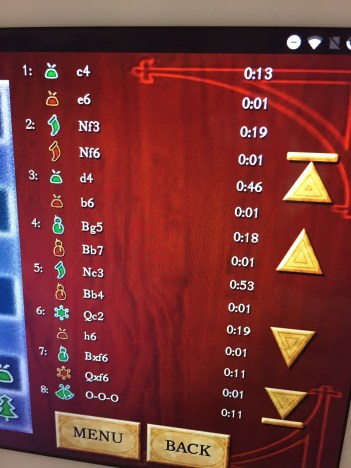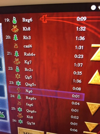 The final position in yesterday’s fun chess game: for my student, defeating her i-pad felt a wee bit like Christmas again!!
