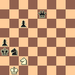 In the beautiful chess study, White forces a win with 1 Ne3+ Kg3 (the move of best resistance) 2 Qg4+ Kf2 3 Qf4+ Ke2 4 Qf1+! Kd2 (4…Kxe3 loses to the skewering check 5 Qe1+ followed by Qxe7) 5 Qd1+ Kc3 6 Qc2+ Kb4 (6…Kd4 walks into the knight-fork 7 Nf5+) 7 Qb2+ Nb3 (or 7…Ka5 8 Nc4+ Ka6 9 Qb6#) 8 Qa3+!! Kxa3 9 Nc2#, checkmate!