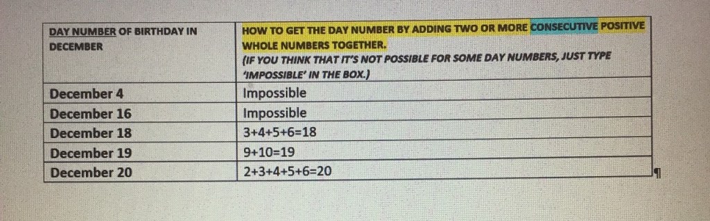 Pictured below, is part of Wout’s perfect solution to a fun wee prize puzzle that I sent on Wednesday night to everyone in the school, as we’re looking forward to celebrating several birthdays here this month.