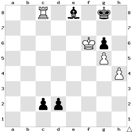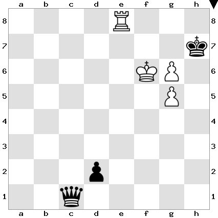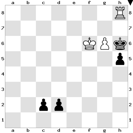 If Black instead promotes either the c-pawn or the d-pawn at move 2 in the line given above, then White responds with 3 hxg6#, checkmate!
