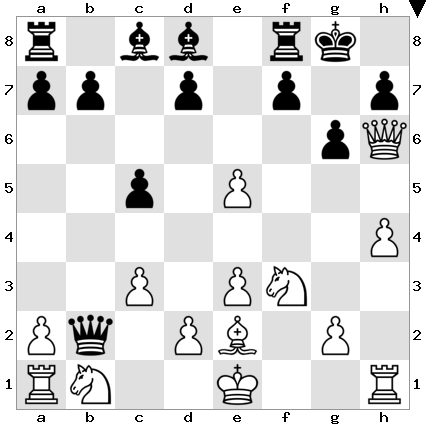 Paul Dargan had sacrificed a rook and a bishop to reach the position above, and he concluded the wonderful game with 1…Qxf3+ 2 Kb4 (or 2 Kc2 Qd3#) 2…c5+! 3 Kxc5 (or 3 Ka3 Ra6#) 3…a5! (ensuring that White’s king cannot retreat and escape) 4 Kb5 Qc6+ 5 Kxa5 Qc5+ 0-1. White resigned, in view of 6 Ka4 Ra6#.