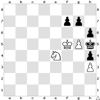 In the chess puzzle, White forces checkmate with 1 Nf6+!! gxf6 2 g6!! fxg6+ 3 Kxf6 g5 4 Kf5 g4 5 hxg4# ! ♥😊♥