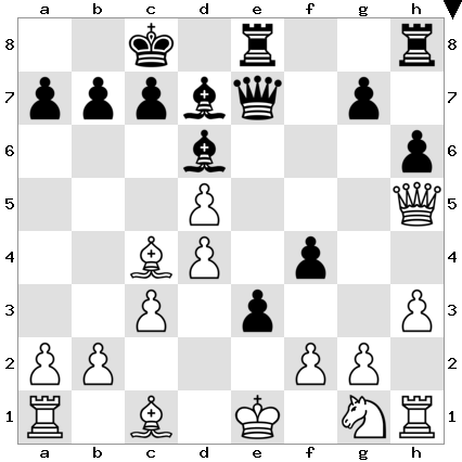 - White wins with 1 Bxh6!, intending 1…gxh6 2 Qg6+ Kh8 3 Qxh6+ Kg8 4 Rae1 Qd6 5 Qg5+ Kh7 6 Re4 Qg6 7 Rh4+ and the loose bishop on c5 will be captured for free.