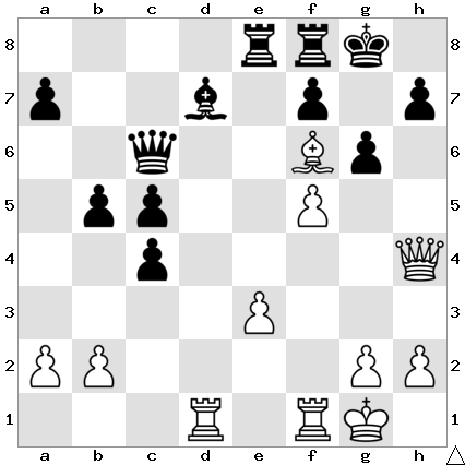 - White won with 1 Rxd7 Re4 (or 1…Qxd7 2 Qh6) 2 Rc7 intending 2…Rxh4 3 Rxc6 or 2…Qxc7 3 Qh6 or 2…Qd6 3 Qxe4.