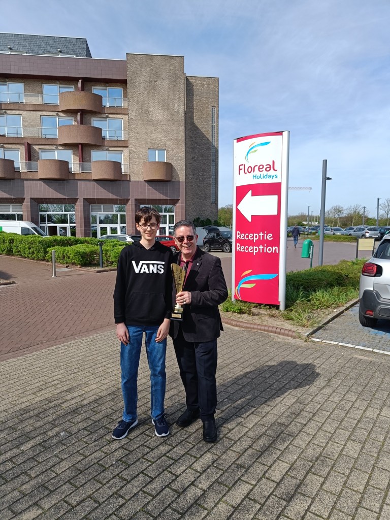 International Master and organiser Tom Piceu won the Open section, young super-talent FIDE Master Jacob Dreelinck won in the Experts group, and I won the Senior tournament. We received stunning trophies created by Archery Dynamics TrofeeΓ«n (Ostend) π, and indeed many participants are receiving money prizes after performing really well.